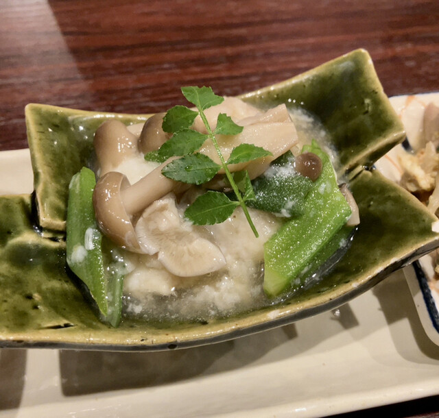 口取り…ササミの磯辺揚げ、がんも、菜の花のおひたし(ワサビ風味)