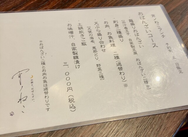 ◇宵ノねこランチ おばんざいコース:3,000円(税込)