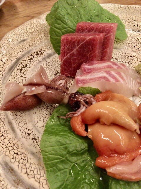 ◇お造り : 赤貝(生姜醤油と)/まぐろ/鯛/蛍烏賊