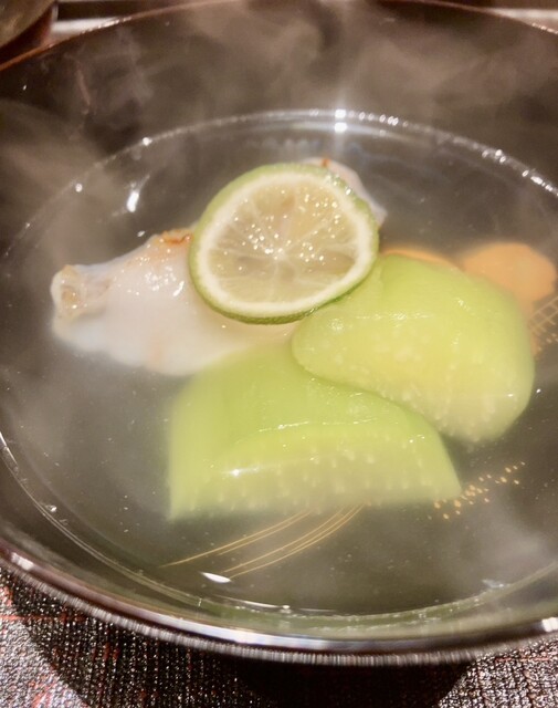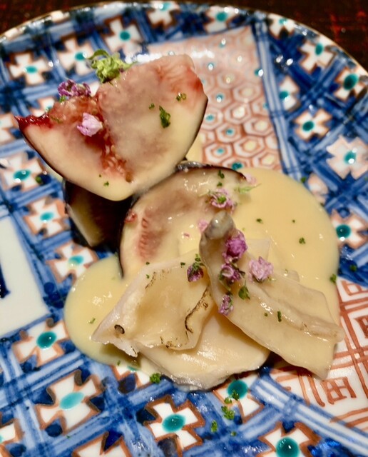 温物の うんぺん(雲片) も最高、八寸 もそれぞれが逸品、油物の 穴子・新銀杏 も山椒ソースがGOODで、酢の物の 海松貝・黒無花果 も同じ料理を色々味わってきた中で、味付けが過去一でした。