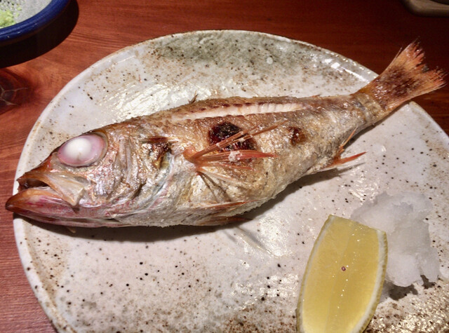 ちびちびつまみながら、ビールを楽しんでいるところに、焼き上がった"焼魚 うおぜ"が到着。