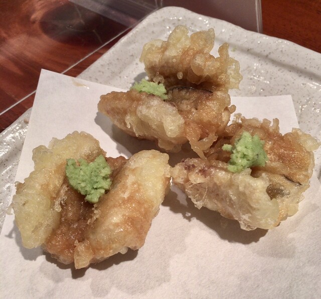 "いわし天"は、大葉付き。立派ないわしの身で、見ても分かる、食べたら更に分かるネタの良さ♪コチラも、適度に塩がふってあり、そのままで美味しくいただきました(^^)