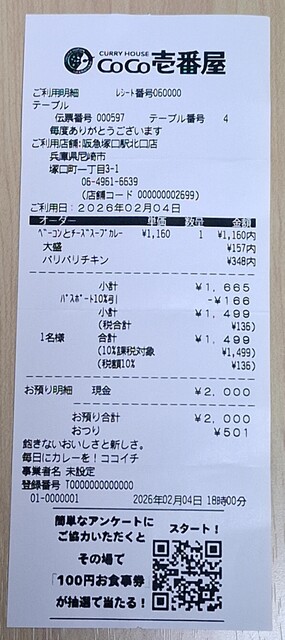 ¥1,000~¥1,999 / 1人