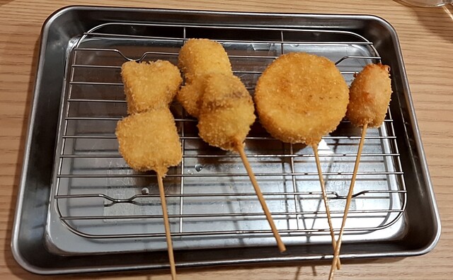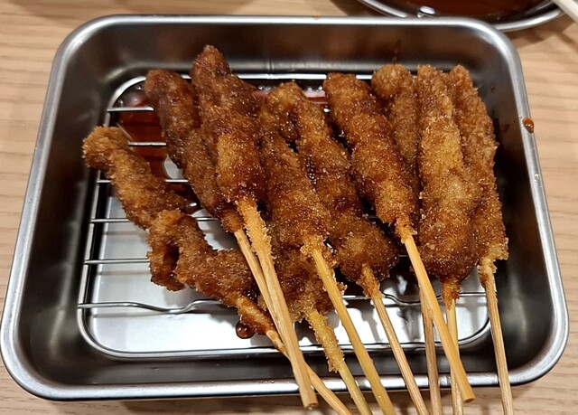 今回のファースト串は、無限2種を5本ずつ。ホント、コレだけでも食って呑んでできるのヤバい。