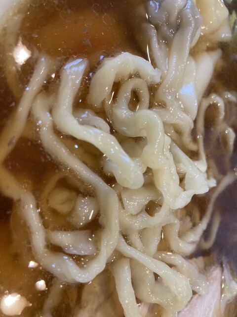 スープは魚介、おそらくは鰹節と煮干し系が入っている出汁を感じるもので、私と妻の好みにマッチ。塩味もちょうど良く美味しいスープでついつい飲んでしまう味。