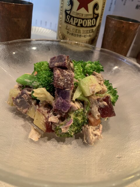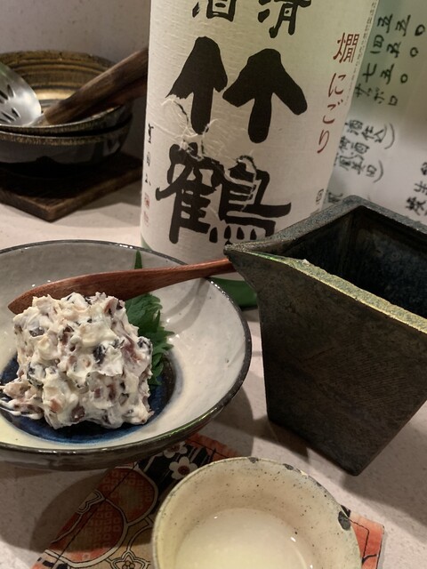 酒肴の干し柿クリームチーズ、自家製燻製も。