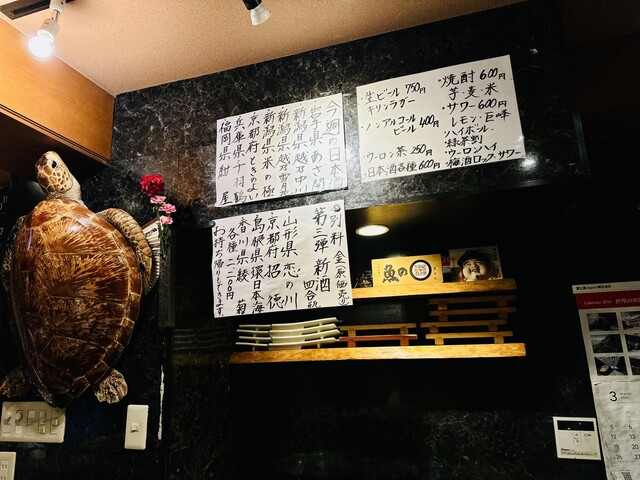 料理のシステムとしては、その日の仕入れ状況によってメニューが変わる、おまかせコースのみで、お客さんの好みや食べるスピードなどに合わせて料理を調整してくれるなど、柔軟な対応が特徴的です。魚料理を中心としたコースで、刺身、焼き物、煮物、創作料理、寿司など、多彩な料理が提供されます。