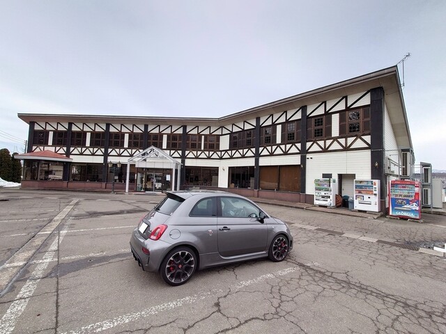 駐車場にはまだ雪が残っていて雪国に来た感じが良いですね。