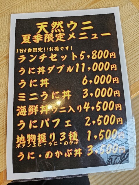 仕事で奥尻島に来ましたが、食はセイコーマートの惣菜しか食べておらず、帰る前に解禁されたウニを食べたくてお邪魔しました。