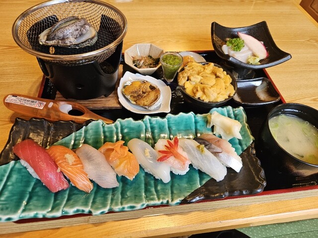 ミニウニ丼や握り、アワビなど豪華な内容でこの値段は破格です。