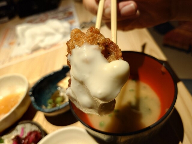 唐揚げは衣サクサクで中身はジューシー。お手本の様な唐揚げです。ビール欲しくなるのはここが居酒屋だからだけではないな。