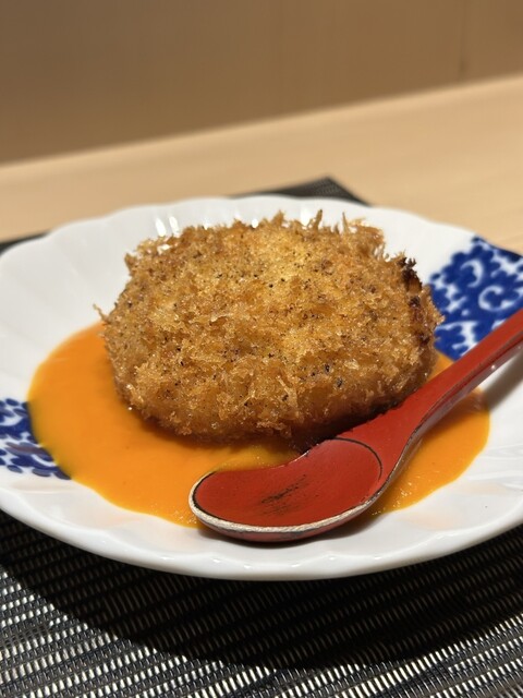 濃厚ソースが添えられた「蟹クリームころっけ」と