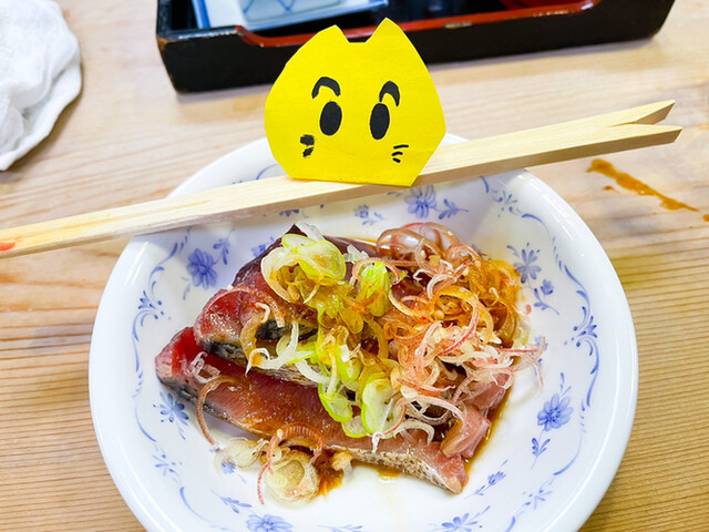コチラなかなか食べれないらしいカツオを使ったタタキ!!もーまーうますぎてもう、、。ポン酢もうまかった、、!