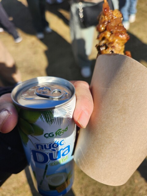 鶏串とココナッツジュース