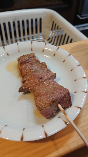 やっぱり毎度同じラインナップに。二串目に出て来たかしらは相変わらず旨いので、〆にリプライズ。たんってあったっけ?血管は新メニューだそうだ。がつを柔らか目とかた目で出してもらったのも初めて。