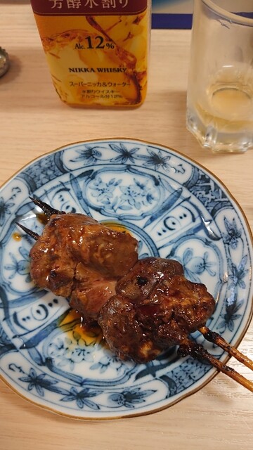 入店した客に自動的に提供される三種類、アグネスラムのような焼鳥、部位の組み合わせが絶妙なハートスタミナ、肉の旨味が詰まったピーマン肉詰めをいただきながら、ウイスキー水割りを飲む。既にこの段階でかなり満足しちゃってる自分がいます。