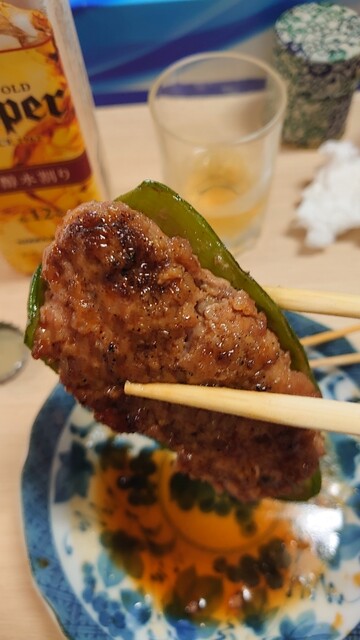 生だけじゃなく、焼いた半生もピーマンの肉詰めも、これまたいい味出してます。すると旨きゃ旨いほど、「串もあればなぁ…」と残念な想いがふつふつと沸き上がります。