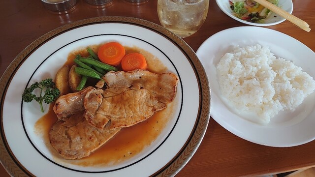 ポークジンジャーは、しっかりとした食感。肉が硬いのではなく、いい意味で肉の質を感じる歯応え。味付けは甘めではなく、しょっぱめ。ゴルフの調子が良かったので、いつもより更に美味しく感じました。