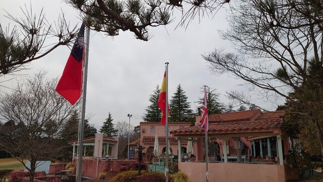 ロペの前夜祭を開催したのはクラブハウスに併設された「和風レストラン」。大いに盛り上がりました。そして本日は、このオシャレな「テラスレストラン」でお昼をいただくことになります。