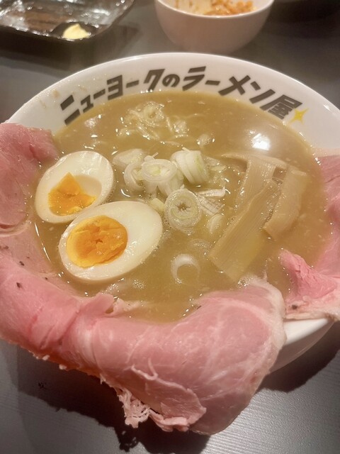 いうまでもなく鶏白湯ラーメンは濃厚な甘みのあるスープがめちゃくちゃ美味しい。 そして新メニューの貝出汁ラーメン。これがびっくりするくらい美味しい。アサリの貝出汁があっさりしていて飲み帰りの締めラーメンに最高です。ニューヨークのラーメン屋さん進化してますねー。