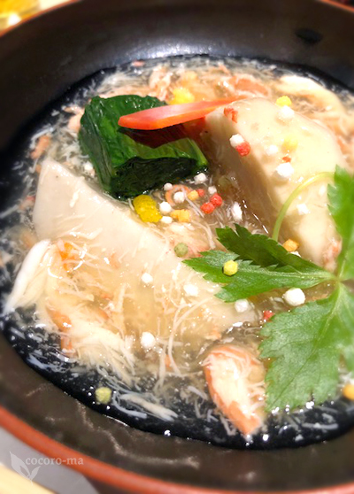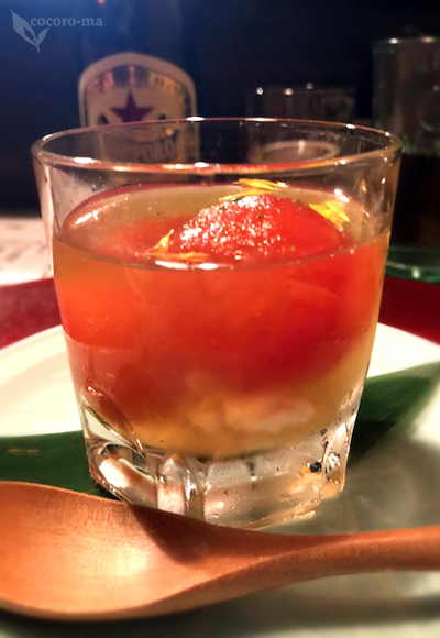 三品目は「椀物」なのですが、冷たいお出汁に浮かぶトマトが…。
