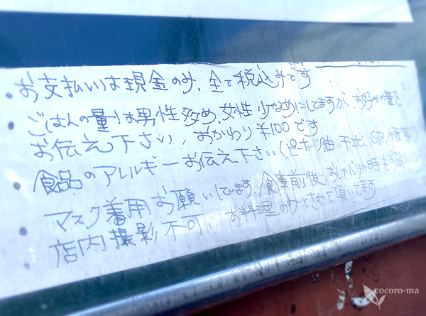 店内ではお料理以外の撮影は不可などの注意書きがあります。
