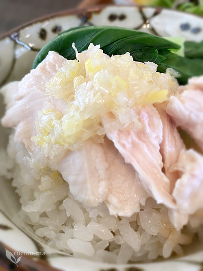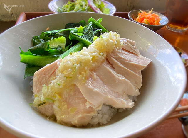 こちらは鶏肉のしっとり感がハンパない「ミニ蒸し鶏のっけごはん」。