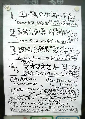 ミニ蒸し鶏のっけごはん付いた「マオマオセット(1,100円)」を注文。