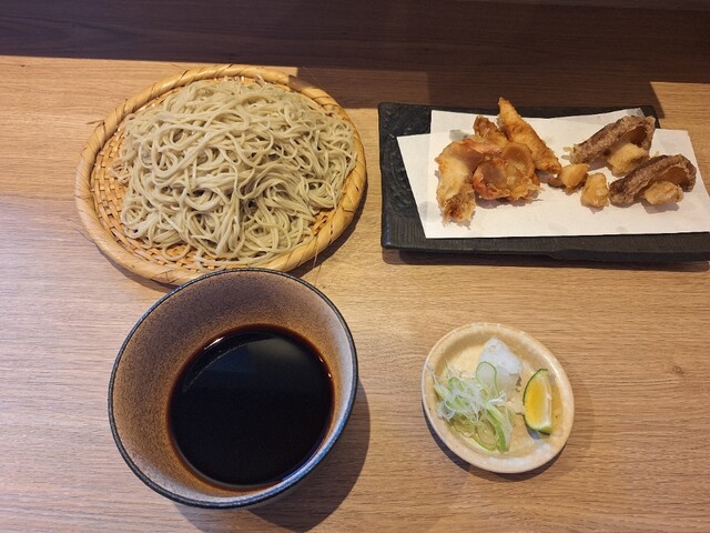 北寄貝しいたけ天もりを生粉打ちの大盛りでいいただきました。