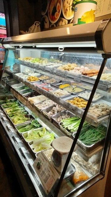 入店後、ショーケースにある食べたい具材を選択して大きなボールに入れるシステム。計り売りでどの具材でも値段は同じ。覚えている限りで、ワンタンとつくね、ウインナー、レンコン、ねぎ、青梗菜、きくらげを選びました(具材代は663円分でした。)。レンコンときくらげが好きなので、沢山入れました。また、ラインの友達クーポンでゆでたまごも無料でもらえました。