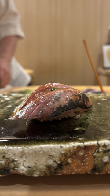 本当にネタがすっごく立派。特に鯵はすごかった笑。わたしは大きめのお鮨が大好物なので、桂太さんのお鮨は本当にタイプ。お口いっぱいの幸せを味わえます..✨