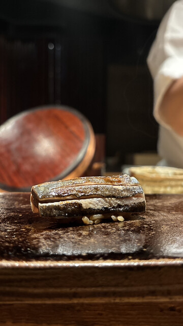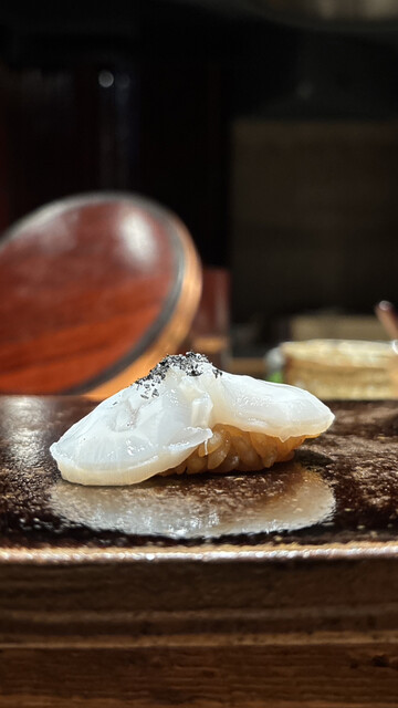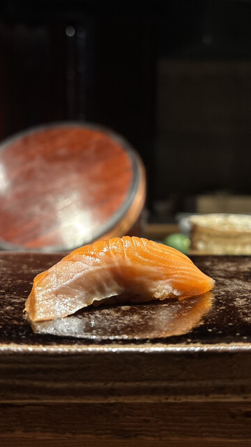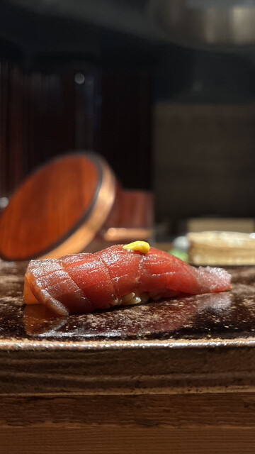 隠れ家のような雰囲気の入り口を抜けると、木の温かみと重厚感のあるカウンターが✨大将の手仕事の見える落ち着いた空間でお鮨を楽しめるお店です。