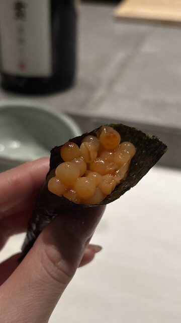 島根県産の仁田米を使っているというシャリはやや小さめで、お米の粒ダチが印象的。女性でもペロリと食べられてしまうコースかと思います。