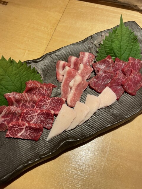 ・馬刺身3品盛り:3,200円⭐︎⭐︎⭐︎