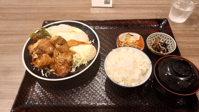 自信ありげにメニュー先頭にある焼豚エッグを定食セットで注文。