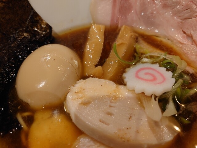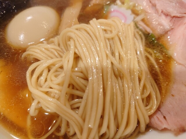 小麦の香りや麺の歯ごたえを感じながら、もう麺だけでもいいかな、という気分にすらさせる。とても美味しい麺。