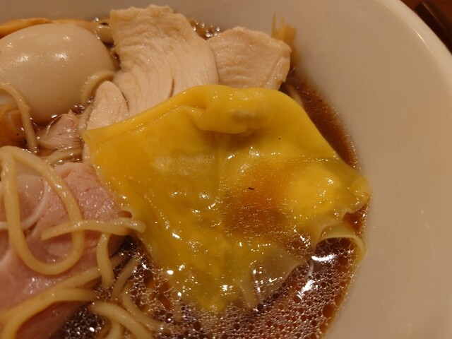 鴨も薄切りながらハッキリとした主張を持っていたし、レアチャーシューも肉の旨味が十分に伝わる仕上がり。あと、味玉は本当の半熟で、絶妙に黄身がとろけ出るがダーダーにはならず、いい感じで甘みと出汁感を楽しめた。