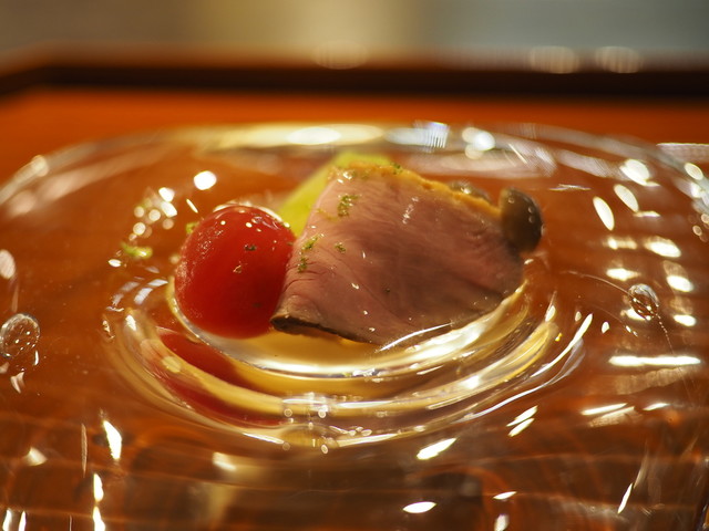 春(3月)から夏(7月)にかけたランチテーマは、"La Mer"(ラ・メール)。瀬戸内の幸を中心に、旬の食材をからめたコース料理になるそうです、今回は肉料理を追加して3780円です。