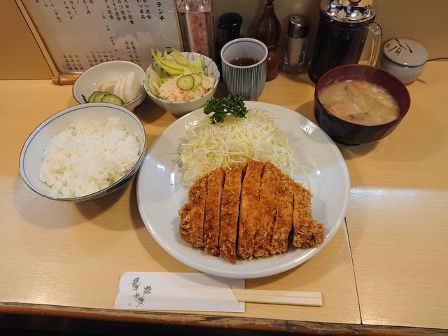 ご飯は炊きたてふっくら、豚汁は具沢山で豚の美味さがしっかり、上品な味わいのポテサラと上質な漬物...脇役もレベルが高く、満足のとんかつ定食でした(*^^*)