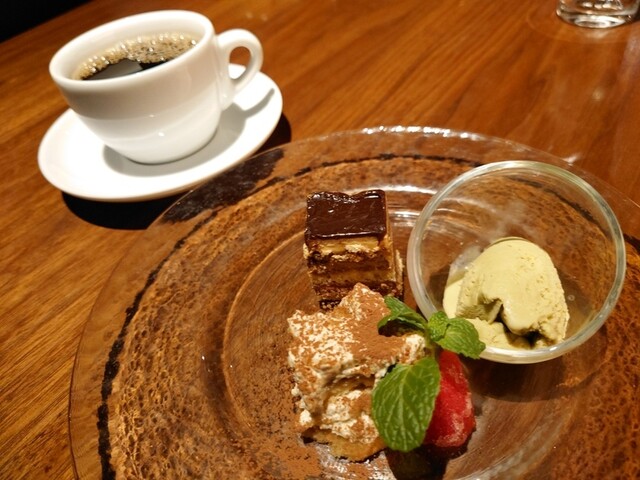 食後には珈琲&デザートを頂きながらまったり...度数強めのアルコールを頂いても〆珈琲で中和される感じがいいですね、酔醒促進効果があると思います。美味しい料理とお酒をしっかり頂けましたので花粉襲来を乗り越えられそうです^^;