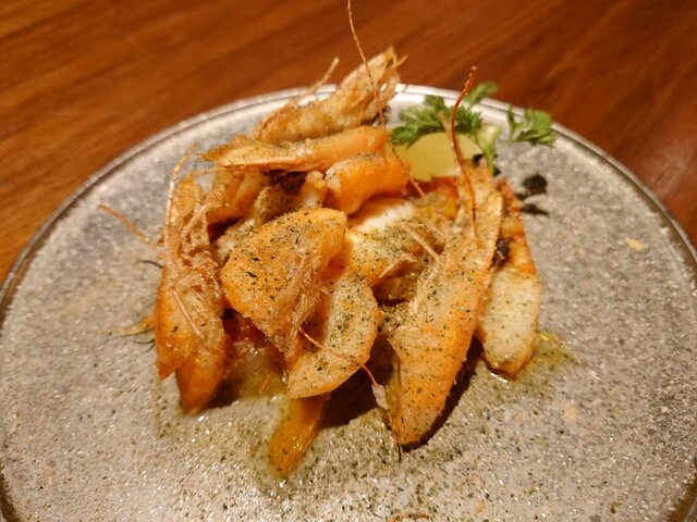 二次会利用です、師走と言うことで店内は賑わっていますね。前菜人気No.1の彩り野菜のバーニャカウダ、シャキシャキ食感の野菜にディップソース(アンチョビ・ニンニク・オリーブ・オイル)が良く合いますね、アンチョビの配合が絶妙で大好きなメニューです^^ たっぷりの海老ときのこのサラダ、ちょっと変わった温仕様ですがこの季節には有り難いです。カラッと揚がった天使海老のフリット、サクサク食感でアテに最高ですね、毎回注文しているような気がします! 角ロックを二杯頂いて酔いを深めました(*^^*)