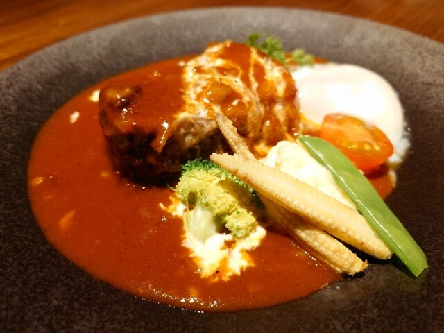 食事前のメインは和牛のグリル、余分な油が落ちて旨味だけをしっかり凝縮、野菜と一緒に堪能です。食事は鴨のキーマカレー、挽肉粒が食感強めでダイナミックな味付け、鴨肉の旨味が強いルゥを楽しみました。