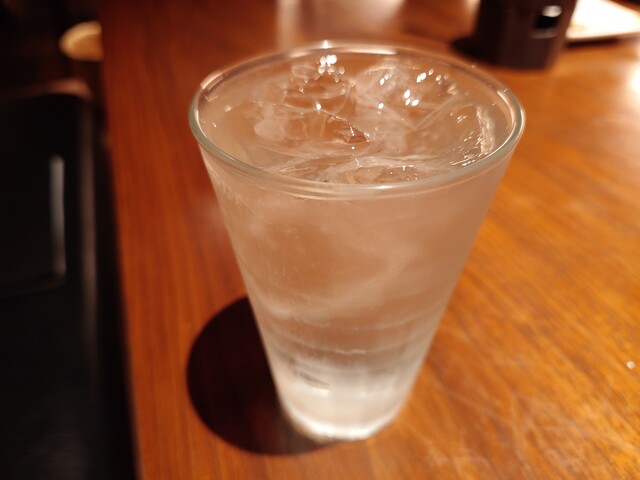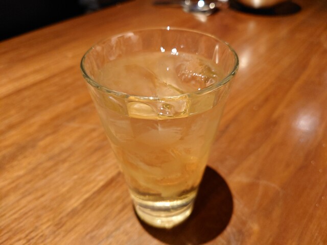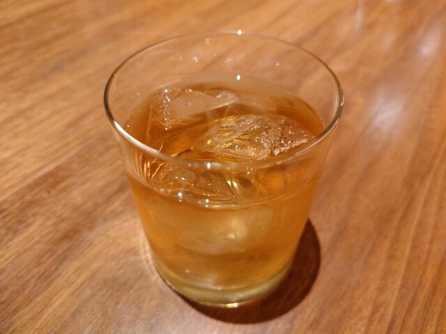 21時過ぎでお客さんも一段落した頃合い、入り口すぐのカウンター席に座りウィスキーロックを注文、大将と飲食店話題で盛り上がります。