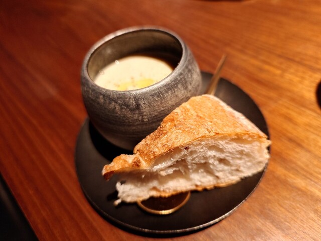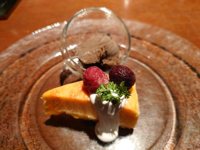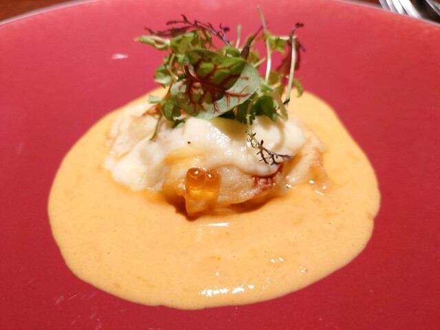 濃厚な味わいのポタージュはニョッキ仕様、優しい味のじゃがいもを濃いスープが包み込みます。魚のテリーヌは繊細な味わい、芸術的な盛り付けですが見た目通りの華やかな味付けを楽しめました。