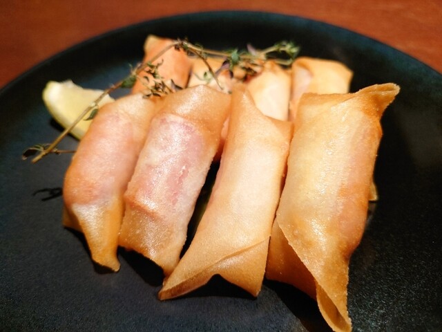 イベリコ豚の粗挽きソーセージ 春巻き仕立て