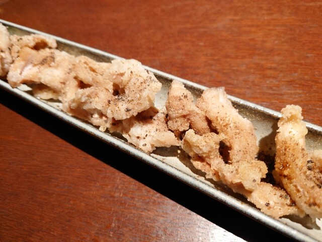 シェフは手が早いのでどの料理も素早く供されます、順番の決まっていないランダム注文でこの提供時間は素晴らしいですね。海の幸のタルタルは最中に入れることで和風味が強くなり新鮮な味わい、イベリコ豚の粗挽きソーセージは春巻きで独特の旨さをしっかり封じ込め、鶏ハラミの米粉揚げは香ばしさが際立ちビールに最適、海老ムースのクレープ包みは海老風味の強いソースでクレープを引き立てます!。