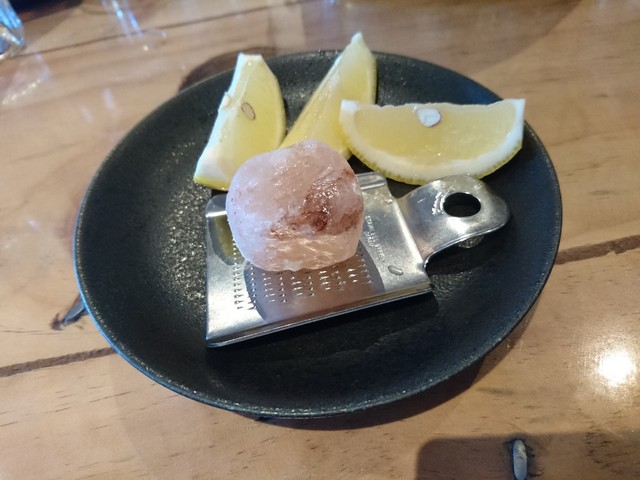 ビールで乾杯の後は、色んな部位を試すべく焼肉奉行(同僚)の采配に任せます。いい加減に酔ったのでどの画像がどの部位か定かではありませんが、イチボ・ミスジ・ツラミ・ハラミ・トンビ・小腸・ロース等々を頂きました。焼き時に使用する岩塩の他に、甘タレ・塩コショウ・わさび醤油・ポン酢の4種が用意されます。