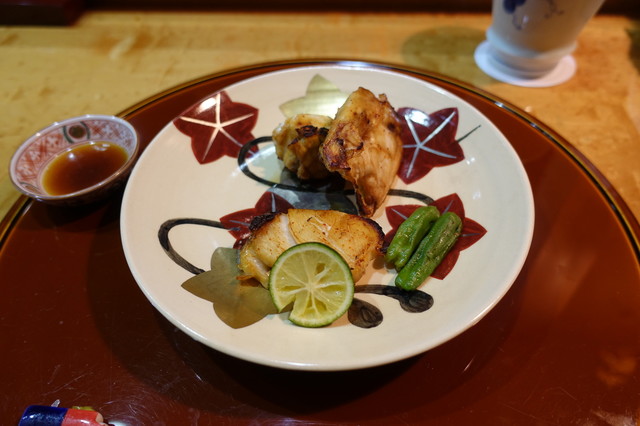 焼き物は河豚とクエ、香味焼きにすることで繊細な身が香ばしい味わいに、量もしっかりでガツガツ齧り付きました。
