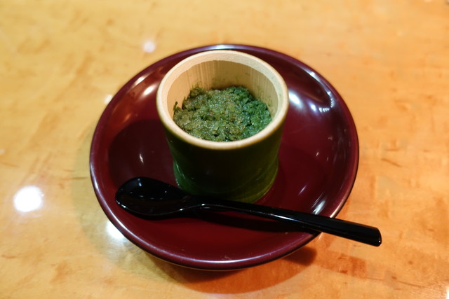デザートはよもぎアイス、餅では定番の食材ですがアイスで頂くのは初めてかも...口内がすっきりしますね。
