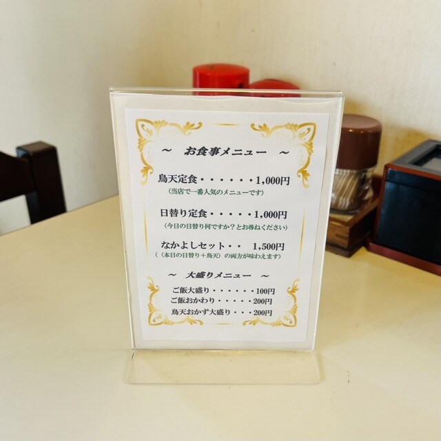 メニューは、とり天と日替わり(この日はとんかつ)ととり天と日替わりのセットの3種類。